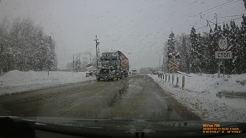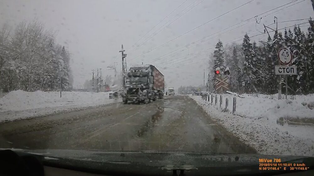 Je zou zeggen dat dit niet de meest handige plek is om je 30-tonner diesel te parkeren, maar gelukkig weet deze aanstormende trein daar wel raad mee.