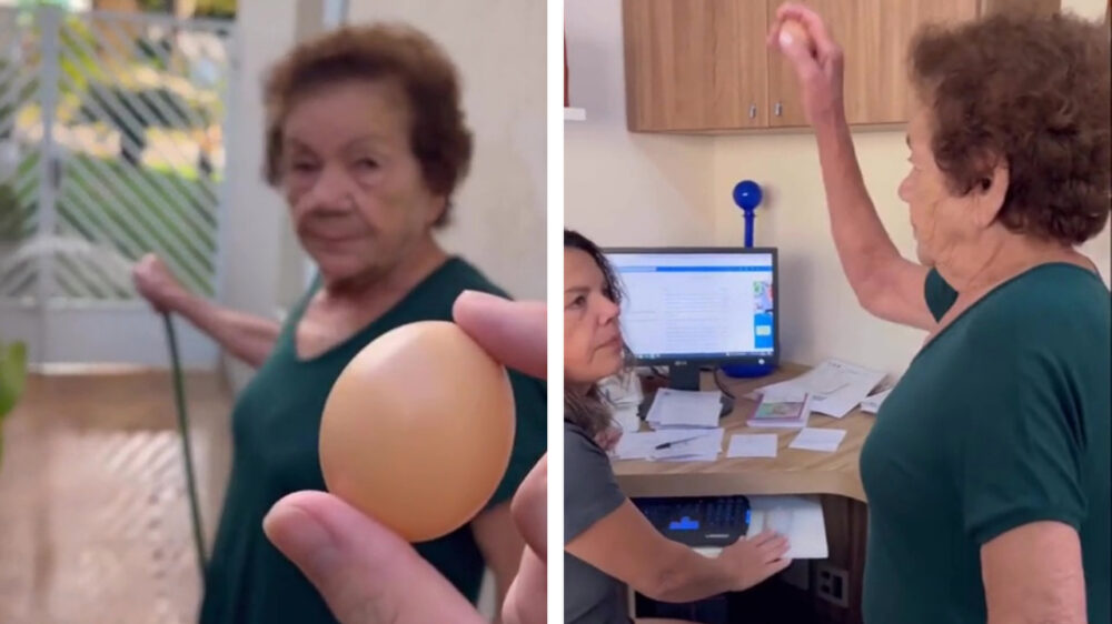 Oma wordt genadeloos te grazen genomen met nep-ei