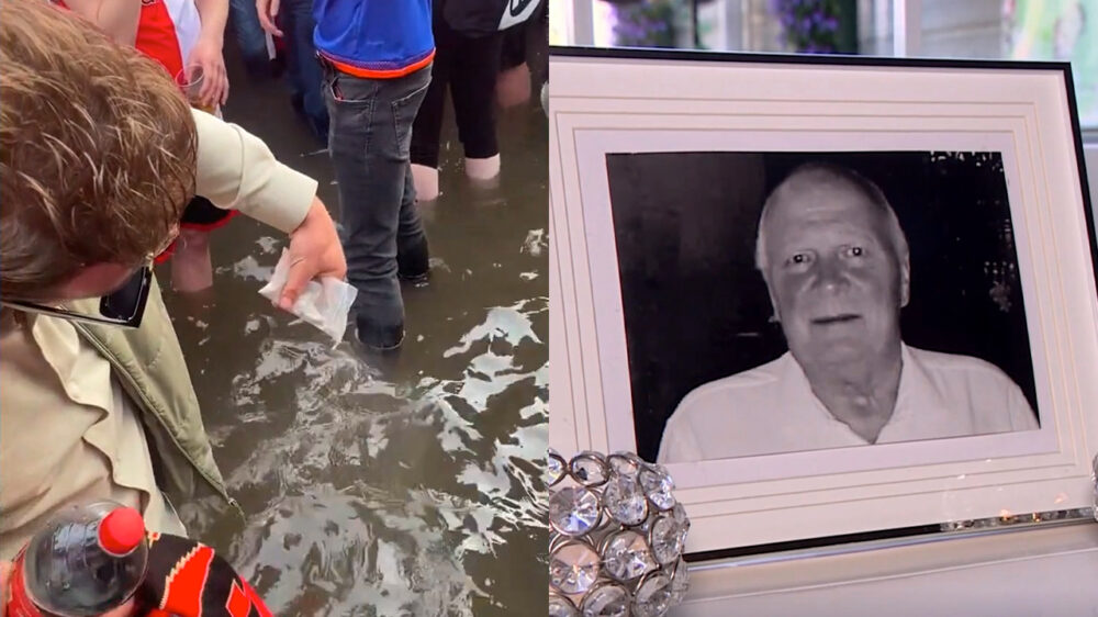 As van opa uitgestrooid in Hofpleinfontein tijdens Feyenoordfeest