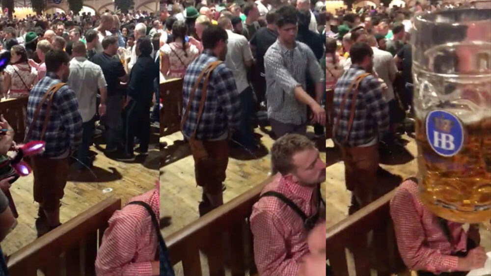 Argeloze Duitser wordt getrakteerd op een gratis 'bierdouche'