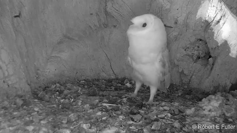 Deze 2,5 maand oude kerkuil-kuiken heeft nog nooit eerder donder gehoord. Mama!