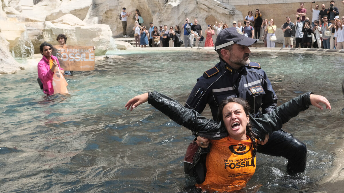 Blitz di Ultima Generazione a #Roma: gettato un liquido nero, carbone vegetale, nella Fontana di #Trevi.