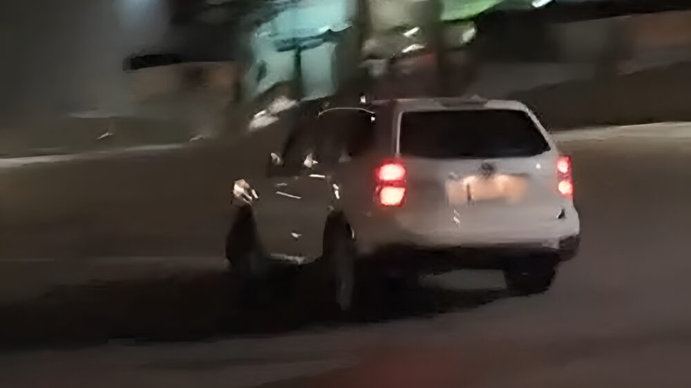 Na een ruzie op een vrijwel lege parkeerplaats met echt heel veel ruimte, maar echt hè, geeft de bestuurder van de witte SUV gas op die lolly om er als een speer vandoor te gaan. Dat kan niet fout gaan, zou je toch verwachten...