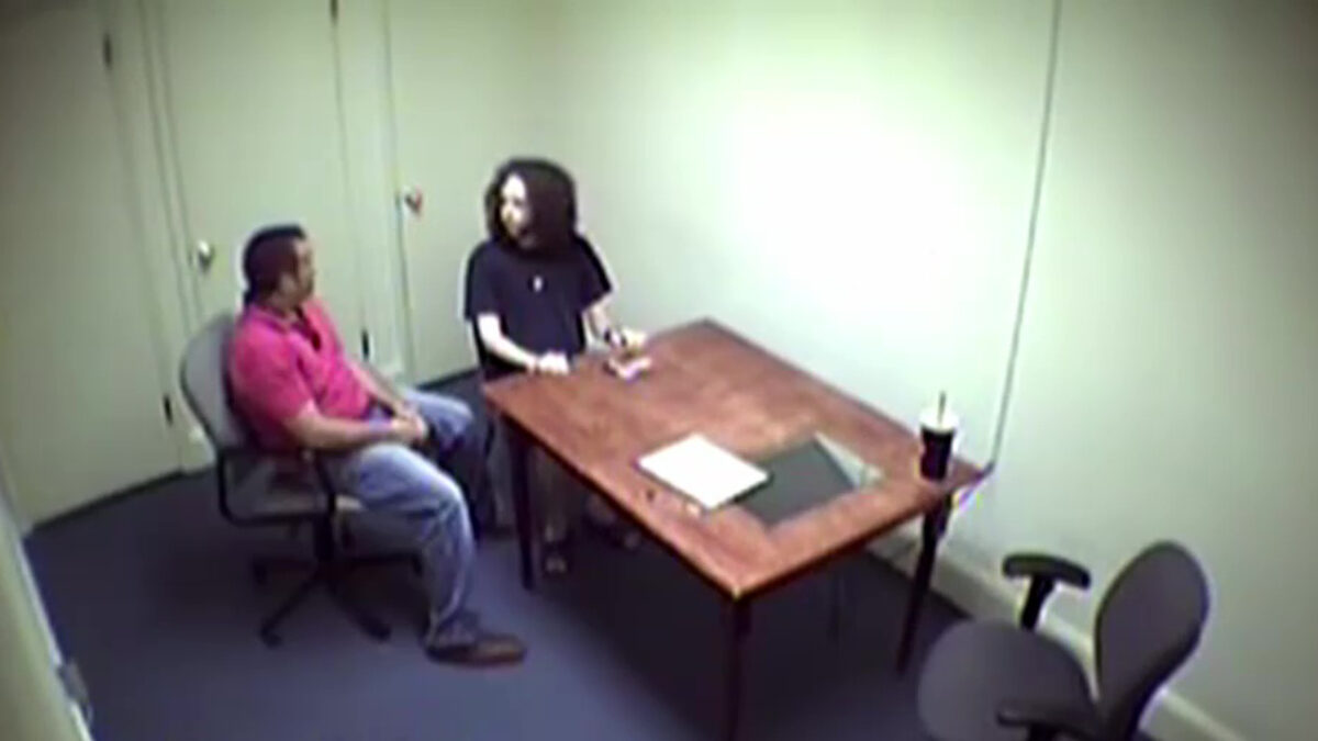 Inmiddels zit Stephen McDaniel (28) levenslang in de bak, maar dit verhoor leverde toch wel bizarre beelden op. Niet zozeer van wat hij te zeggen heeft (want dat kun je niet horen), maar meer van het feit dat hij zijn lichaam ijzig stil houdt. Twee uur lang. Sterker nog, een handige Harry heeft alle frames van de video gecombineerd in één foto waardoor je kunt zien hoe weinig de man beweegt...
