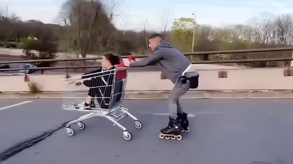 Trust me bro: je kunt prima met een winkelwagen van deze helling knallen