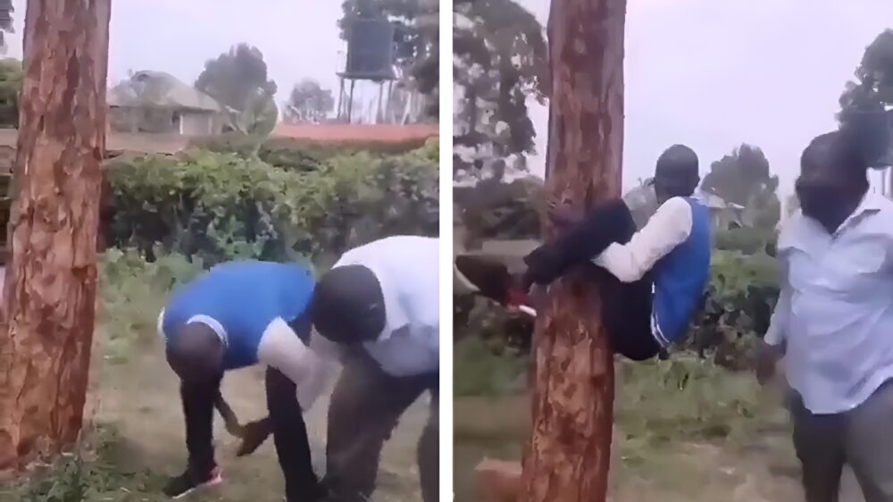 Doe eens gek, hang je collega eens in de boom