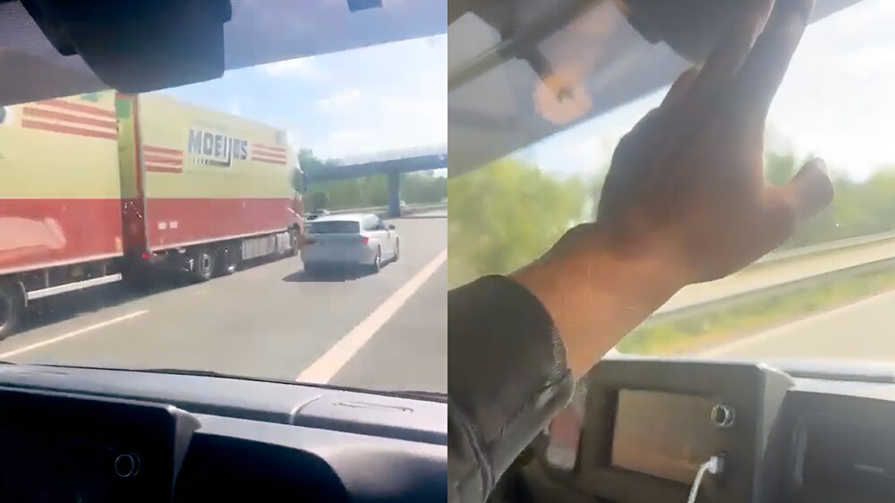 Vrachtwagenchauffeur helpen die kilometerslang door Duitser wordt getreiterd