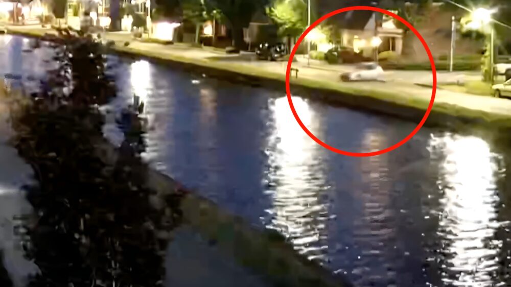 Een beveiligingscamera legde vast hoe een auto het Kanaal Almelo-De Haandrik in Vroomshoop in reed. De chauffeur, een 34-jarige man, springt net op tijd uit zijn auto voordat 'ie kopje onder gaat. De Almeloër wordt ervan verdacht dat hij daarvoor iemand heeft mishandeld en volgens de politie gaat dat om een incident in de relationele sfeer. Hij is inmiddels aangehouden en zijn vader heeft, voor zijn zoons bestwil, aangifte gedaan.