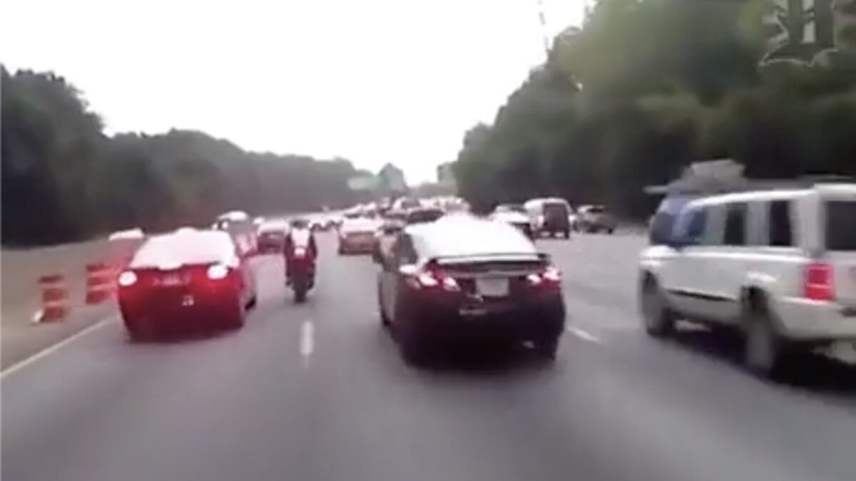 Motorrijder jankt met hoge snelheid door het verkeer totdat hij tot stoppen wordt gemaand Verkeer