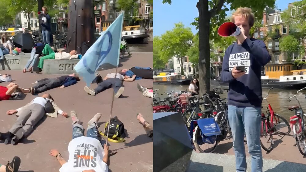 We hadden al klimaatactivisten en natuurlijk de 'klimaatdrammers', maar we kunnen er vanaf vandaag een nieuwe titel aan toevoegen: de klimaatliggers. In het lentezonnetje, onder het toeziend oog van Spinoza, een beetje wegdommelen bij het verhaal van je Extinction Rebellion-collega. Er zijn slechtere omstandigheden waaronder je je boodschap kunt uitdragen.