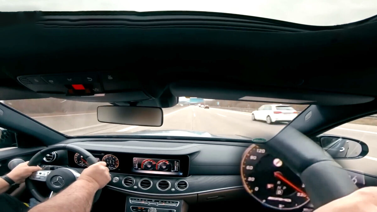 Zo ziet het eruit als je met 330 km/u door een Mercedes AMG E63 wordt ingehaald