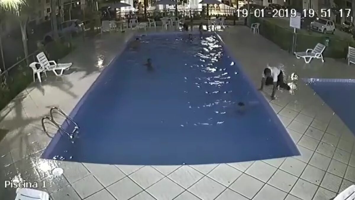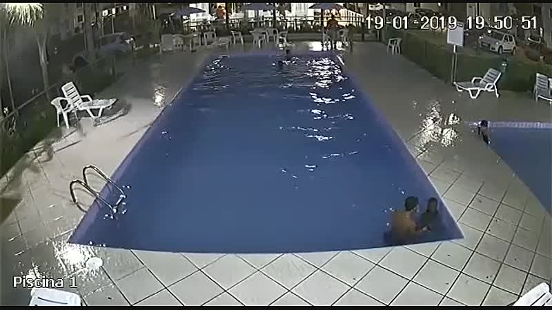 Het jochie ontsnapte aan de aandacht van zijn ouders en nam een duik in het grote bad. Gelukkig lette de portier goed op en kon het ventje weer boven water worden getrokken.
