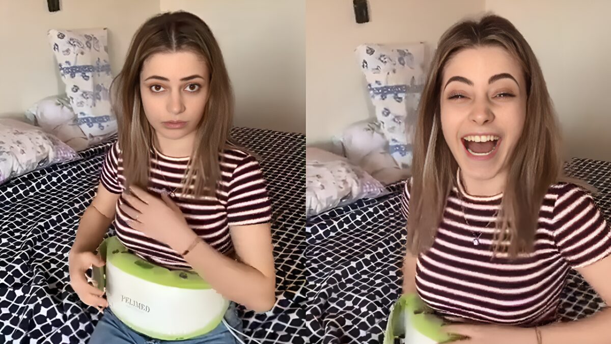 Fitgirl gaat helemaal stuk als ze een massageapparaat uitprobeert