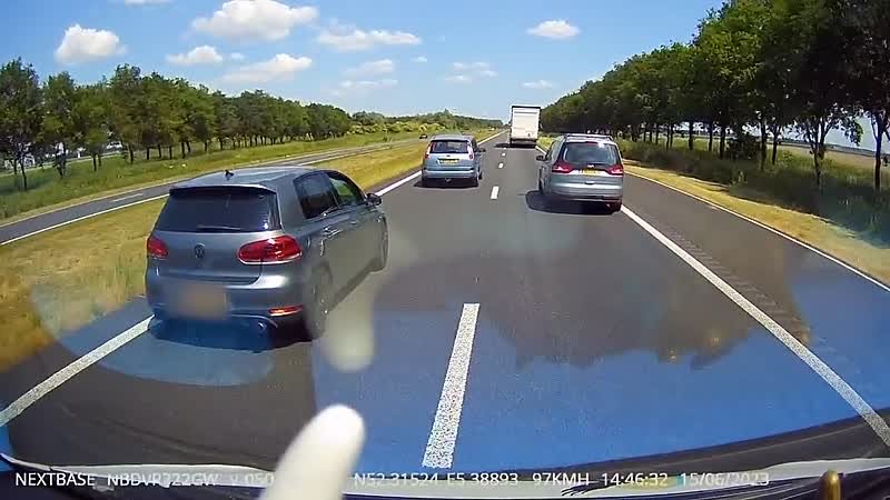 Je zou toch zeggen dat als je zo ontzettend veel haast hebt en koste wat kost je voorbijgangers MOET inhalen, dat je ook niet genoeg tijd hebt om ze daarna ook nog eens uitgebreid op een remtest te trakteren? Het kan blijkbaar dus wel, want deze #verkeershufter in zijn supersnelle Golf die over de Gooiseweg in Zeewolde slingerde is het levende bewijs.
