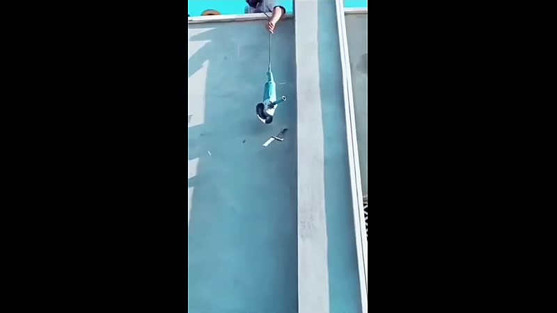 Verdorie, heb jij weer: een stuk metaal dat uitsteekt, maar je hebt geen ladder bij de hand. Wat doe je dan? Precies, gewoon lekker laten bungelen die handel!