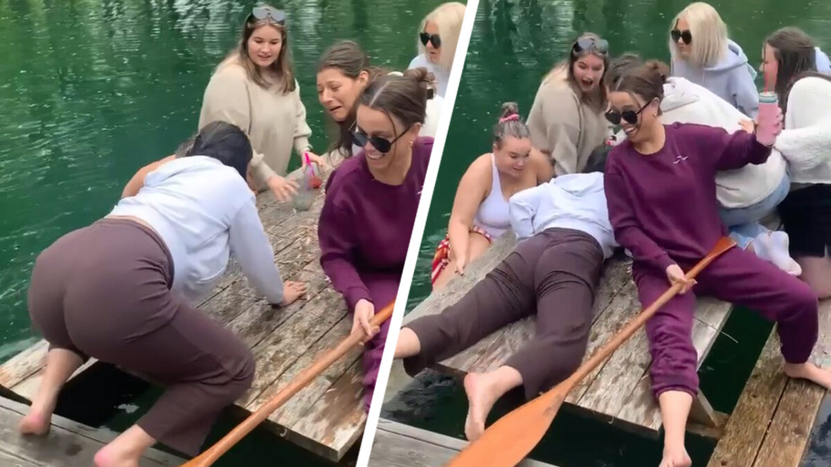 Waarom je uberhaupt een poging wil wagen om met z'n alleen op een picknicktafel te klimmen die in het water ligt weten we nog niet, maar ze weten nu in ieder geval wel dat zo'n geval niet blijft drijven. En ja hoor, alleen Rose van de Titanic weet zichzelf weer eens te redden!