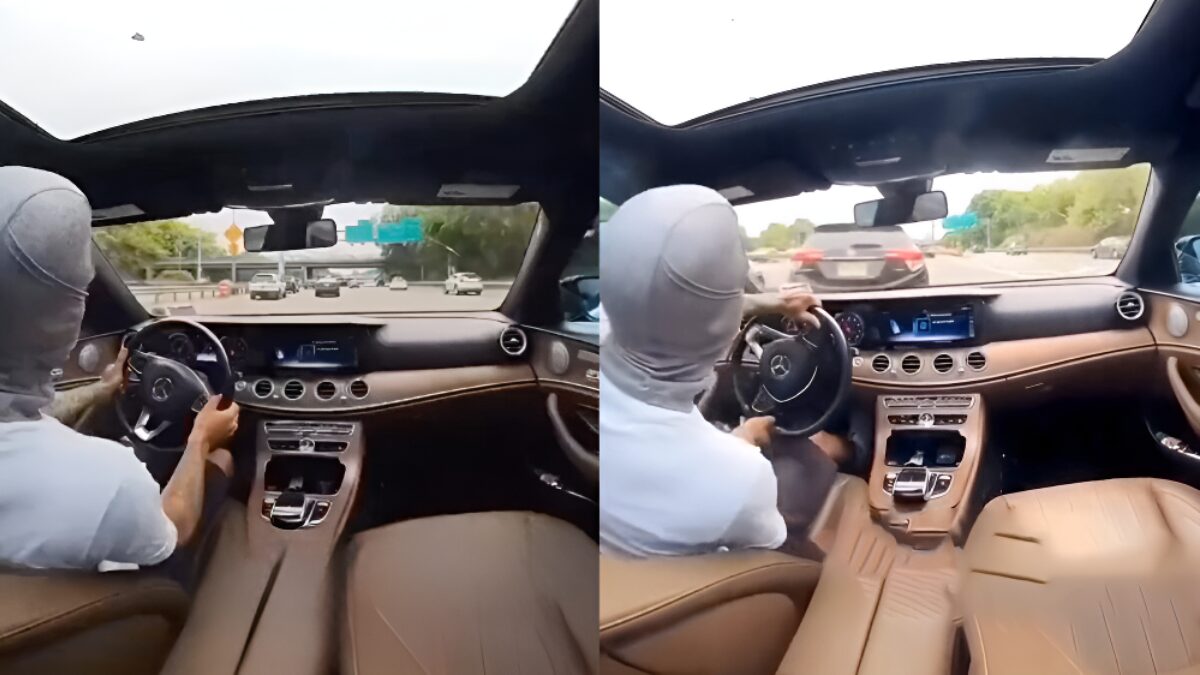 Idioot racet in zijn Mercedes over de snelweg en verliest controle over het stuur