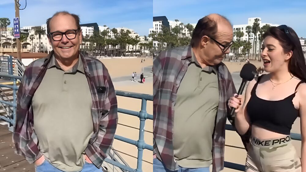 Deze vent bepaalt zijn eigen spelregels tijdens een straatinterview