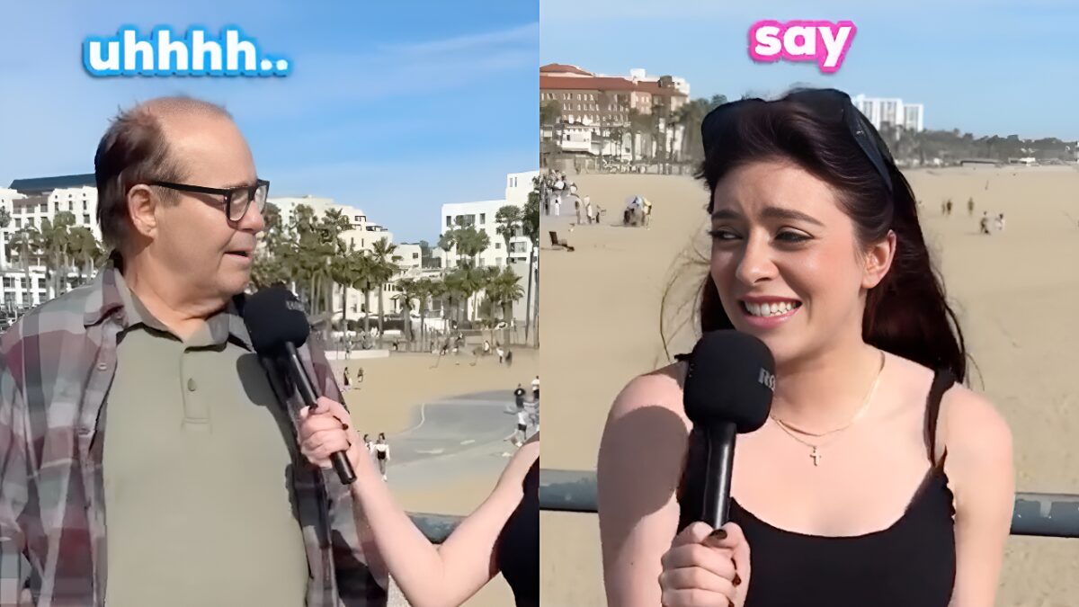Deze vent bepaalt zijn eigen spelregels tijdens een straatinterview