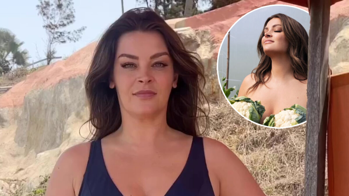 Miljuschka is dol op groente en poseert met twee verse bloemkolen