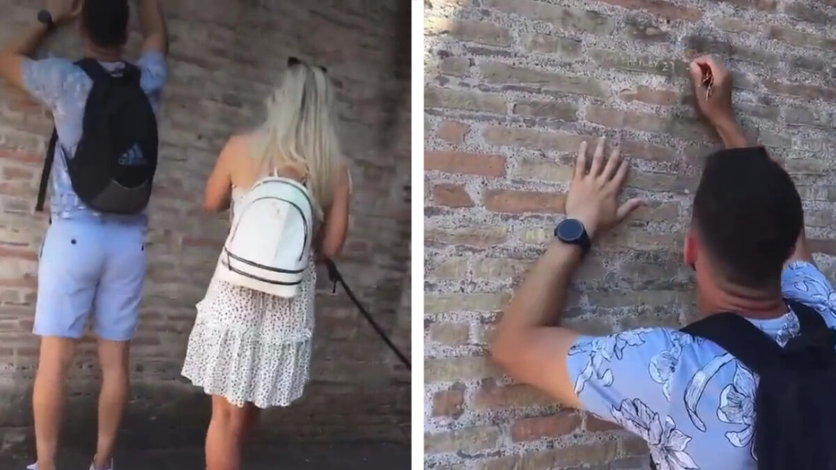 De vakantie van deze toerist kan nog wel eens een stukje duurder uitvallen dan gepland, want hij werd betrapt toen hij de naam van zijn verloofde in het Colosseum in Rome stond te krassen. Niet zijn allerslimste actie aangezien de beelden van zijn daad viraal gaan en zelfs worden getweet door de Italiaanse minister van Cultuur Gennaro Sangiuliano.