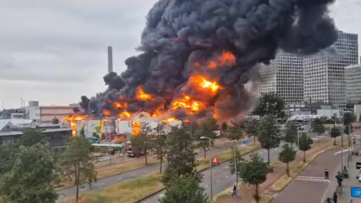 Enorme brand in loods aan Keileweg op industrieterrein Rotterdam, brandweer verstuurt NL-Alert