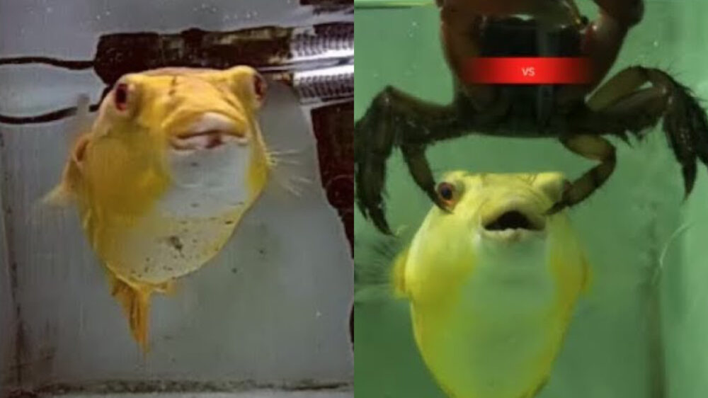 Deze Bluppie uit de oude doos heeft honger, en het maakt hem dan ook geen donder uit wat er in zijn aquarium belandt. Opvreten doet hij het toch wel.