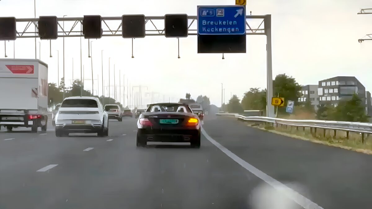 Een plaatselijk buitje op de A2 verpest de eerste proefrit in een cabrio