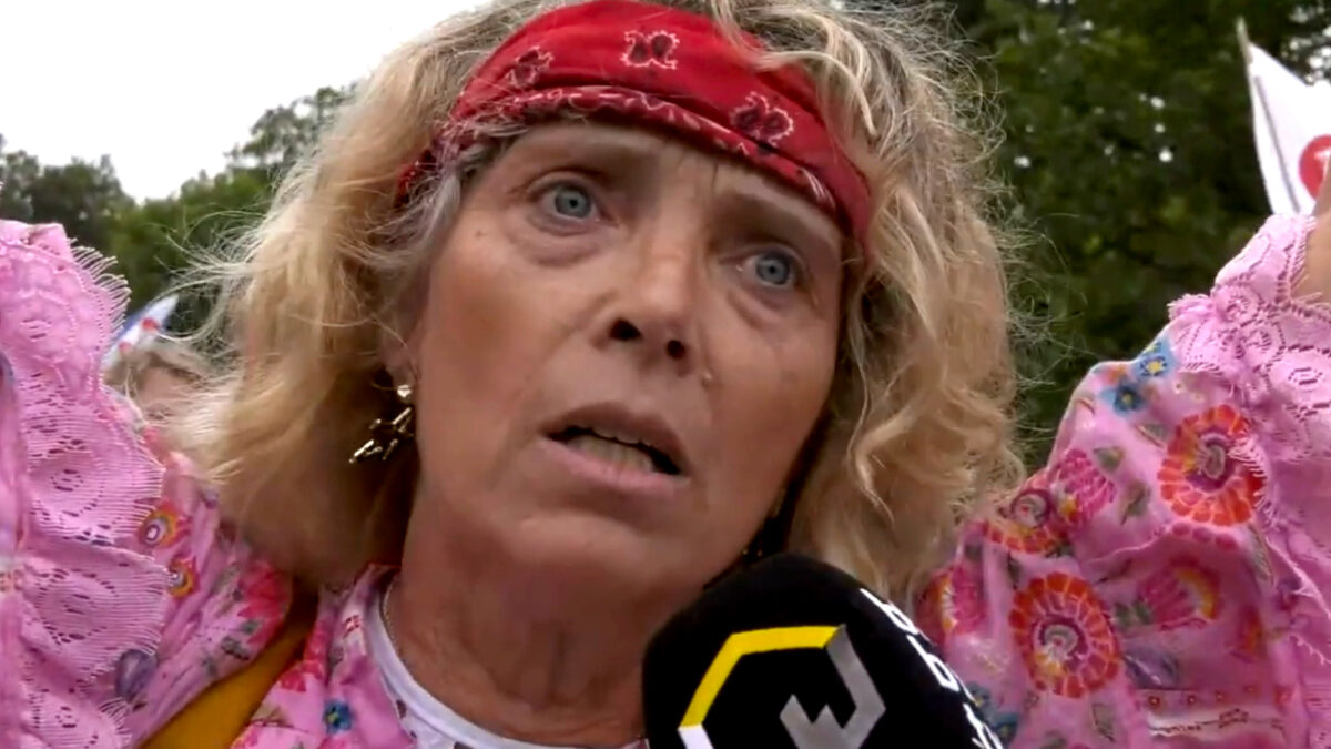 Vrouw lucht haar hart bij het boerenprotest op het Malieveld in Den Haag