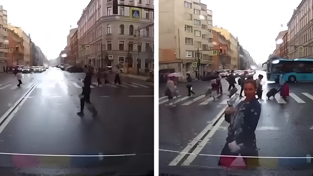 De vrouw uit deze video was zo in haar telefoon verzonken dat ze geen idee had dat ze bijna van haar sokken werd gereden. Gelukkig had deze automobilist haar in de gaten zodat hij op tijd op de rem kon trappen, en hij werd dan ook op passende wijze bedankt!