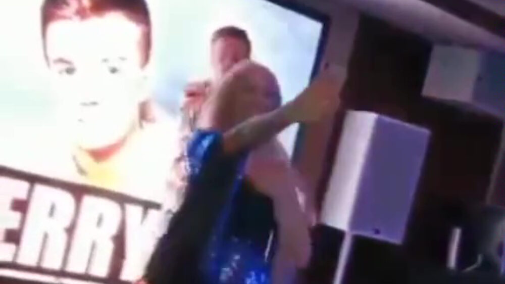 Blijkbaar had Margo er net een optreden opzitten en stond ze nog even een leuk dansje te doen voor haar Insta-volgers. Kon blijkbaar niet iedereen van genieten, want een andere dame uit het publiek beukt haar even keihard tegen het podium aan.