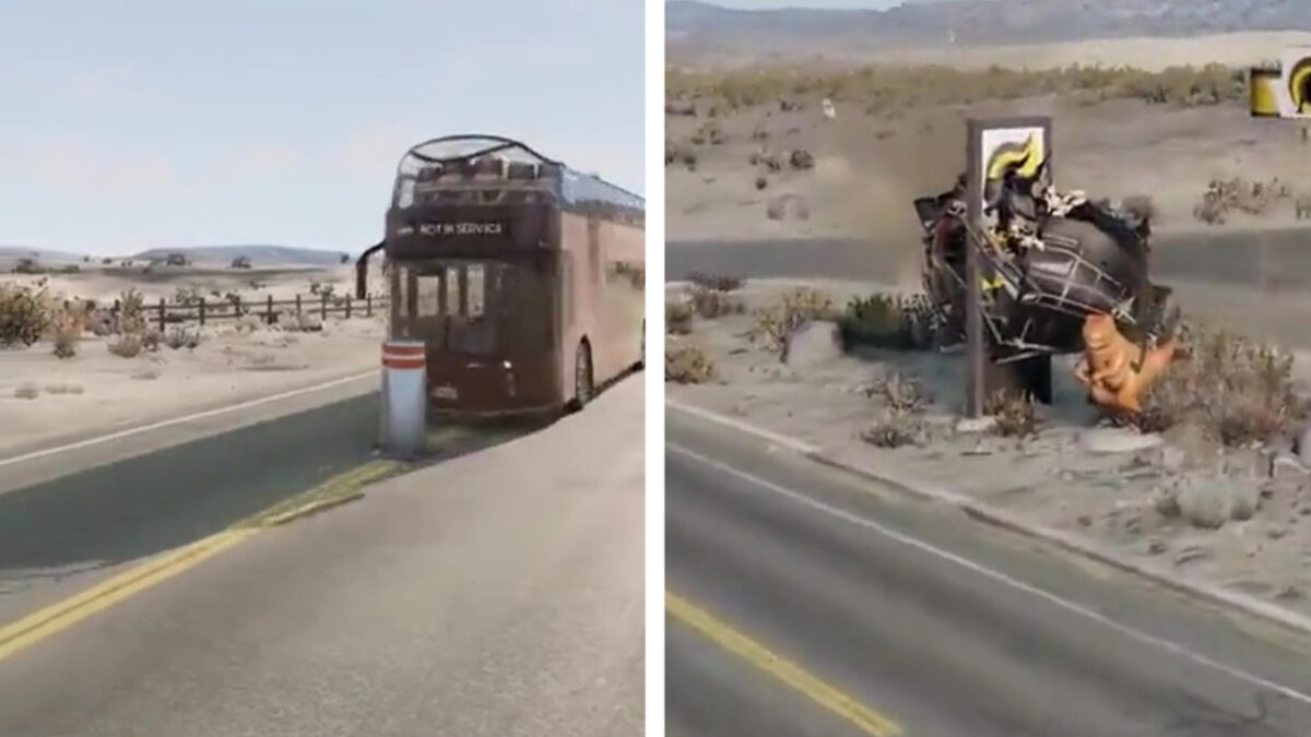 Zo ziet het eruit als een bus met 563 km/u tegen een paal rijdt