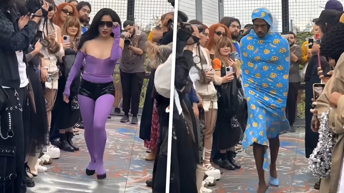 Ze lopen erbij alsof ze door hun ouders voor straf naar hun slaapkamer zijn gestuurd, maar laten we vooral hopen dat dit satire is.