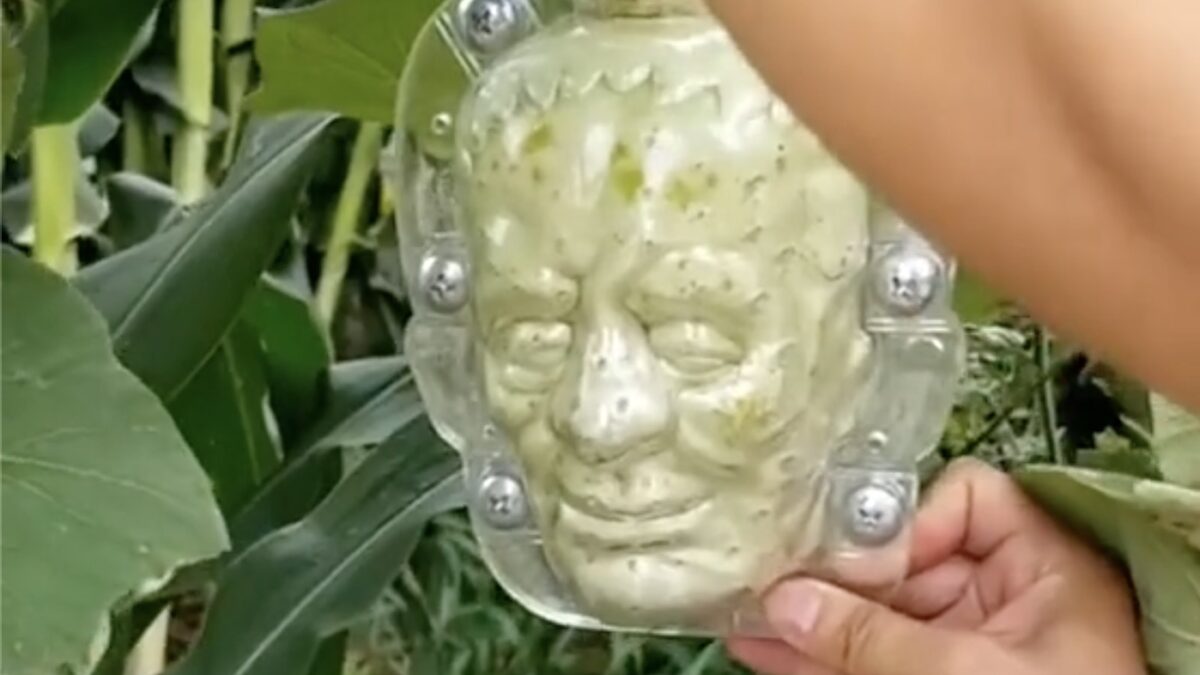 Waarom zou je elk jaar ontzettend veel moeite doen om met je mesje een figuur in een pompoen te snijden als je er ook gewoon een plastic mal omheen kunt vouwen?