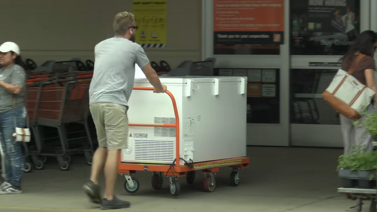 Lolbroeken proberen een wel heel bijzondere vriezer terug te brengen