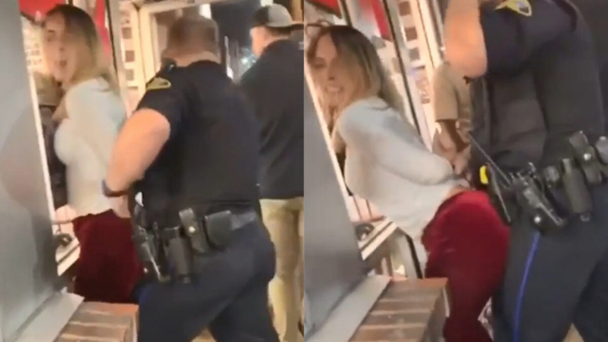 Blondje geniet net iets té veel als ze door een politieagent wordt gearresteerd