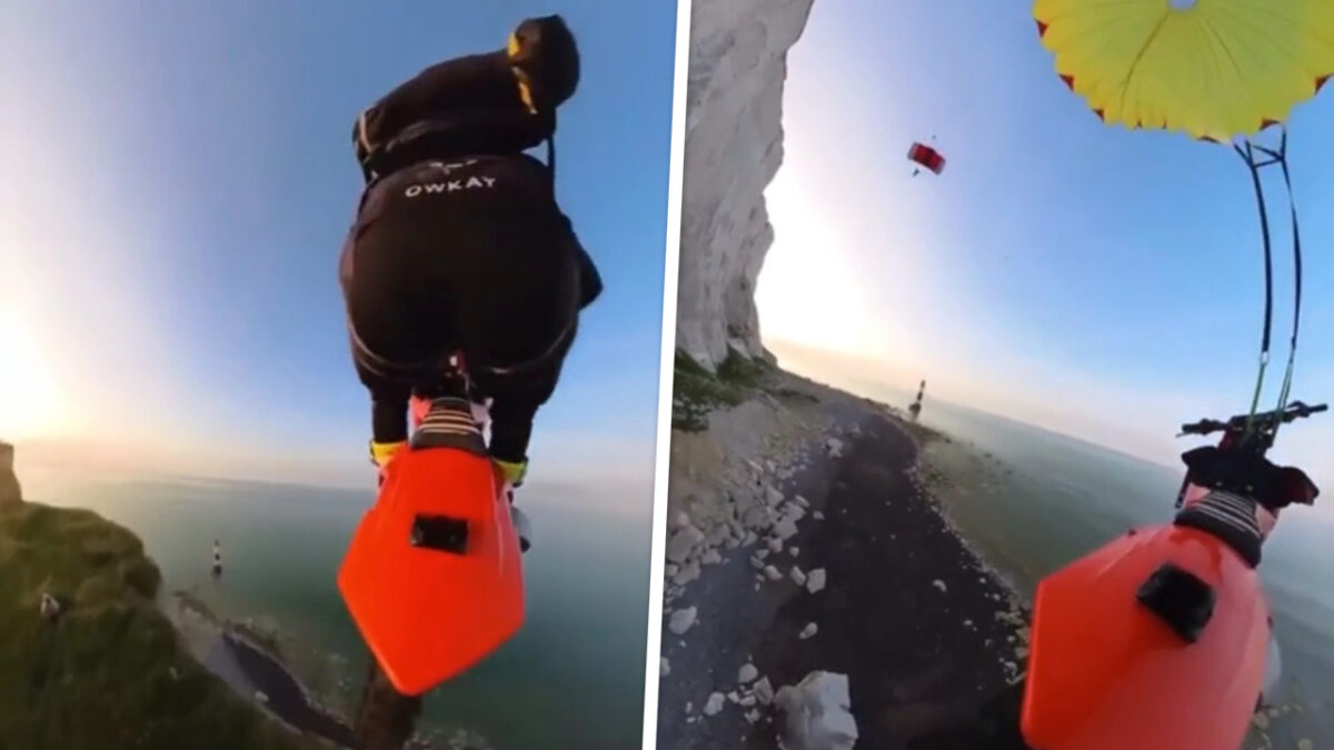 Er komt blijkbaar een moment dat alleen parachutespringen of alleen motorrijden niet spannend genoeg meer is, dus dan gaan sommige mensen dat combineren. Ieder zijn hobby!