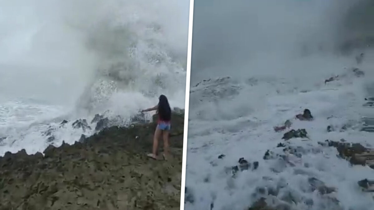 We hebben het hier al wel vaker voorbij zien komen, maar sommige mensen blijven hardleers. We roepen het dus nog maar een keer voor de mensen achterin de zaal: ga nooit op rotsen staan die zich vlak naast een woeste zee bevinden. Dat gaat je rug niet leuk vinden.