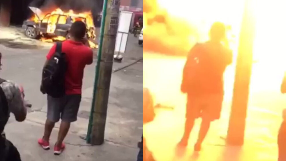 An sich had je natuurlijk kunnen weten dat een brandende auto kan ontploffen, maar je schrikt je wel helemaal het apezuur als dat ook daadwerkelijk gebeurt.