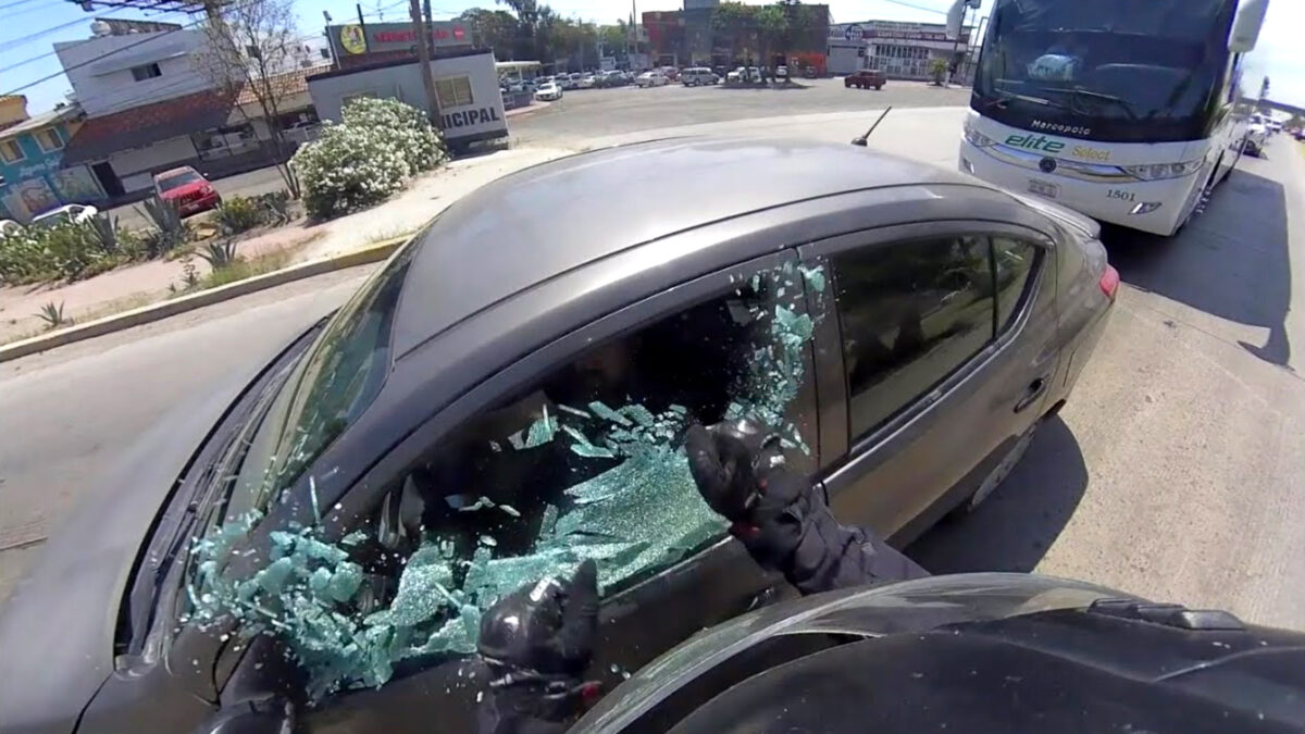 Een motorrijder is in het verkeer een stuk kwetsbaarder dan iemand die in zijn auto rijdt, dus moet deze ook extra scherp op gevaarlijke situaties zijn. Dit is er zo één, maar of er 100% kwade opzet in het spel was wagen we toch enigszins te betwijfelen. Wie daar in ieder geval niet over twijfelt is de motorrijder zelf, want hij besluit de automobilist te achtervolgen en z'n wagen te slopen.