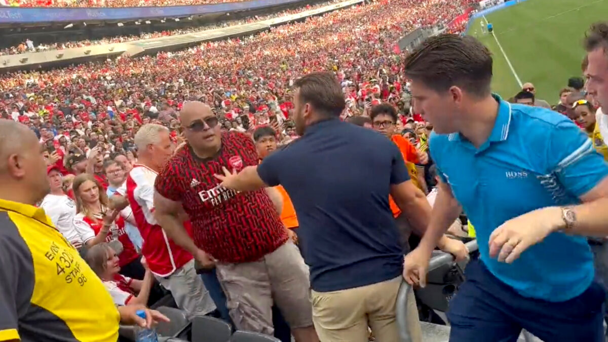 Afgelopen zaterdag speelden de Engelse clubs Arsenal en Manchester United een vriendschappelijke wedstrijd in het Metlife Stadium die uiteindelijk met 0-2 door The Red Devils van Erik ten Hag werd gewonnen. Waar het iets minder vriendelijk aan toe ging was op de tribune toen een aantal 'supporters' blijkbaar ruzie kregen en er vuisten links en rechts door de lucht vlogen. Wederom het bewijs dat voetbal toch echt het mooiste in mensen naar boven brengt.