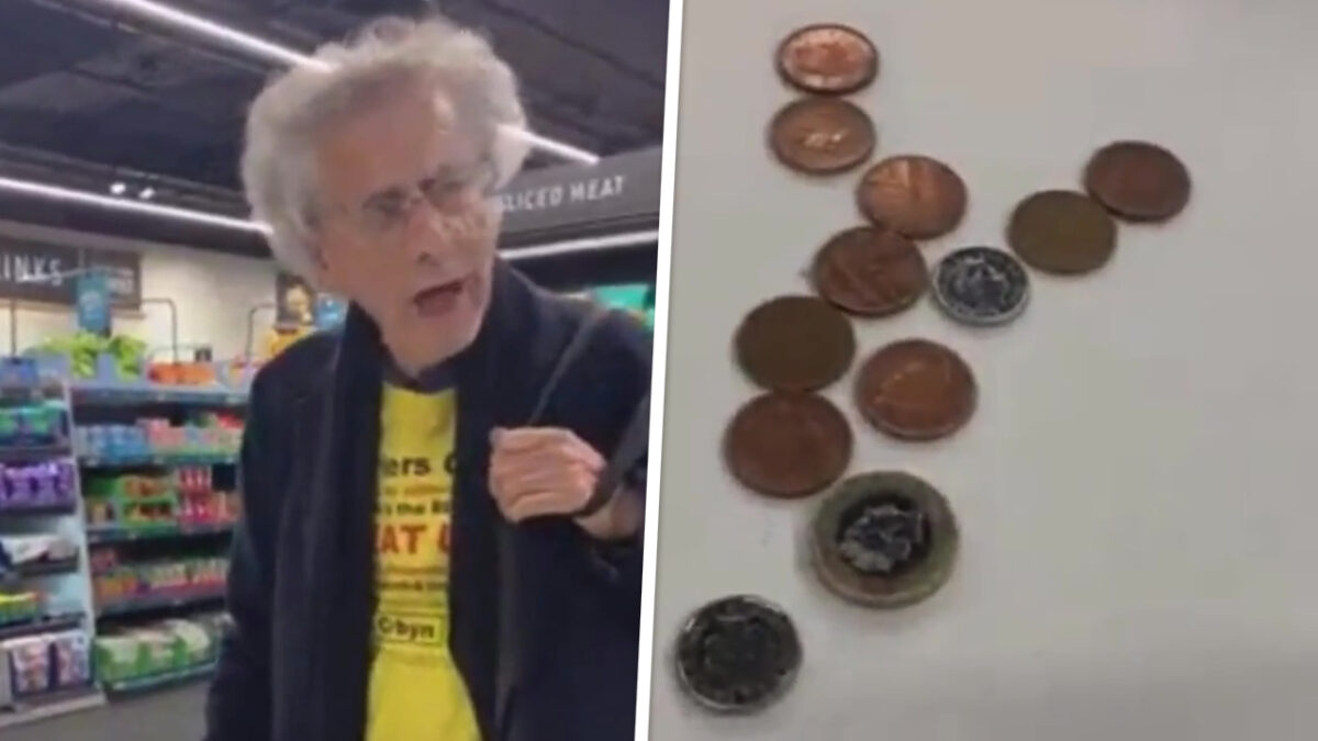 Piers Corbyn veroorzaakt rel in Engelse 'cashless' ALDI en betaalt zijn aardbeien contant