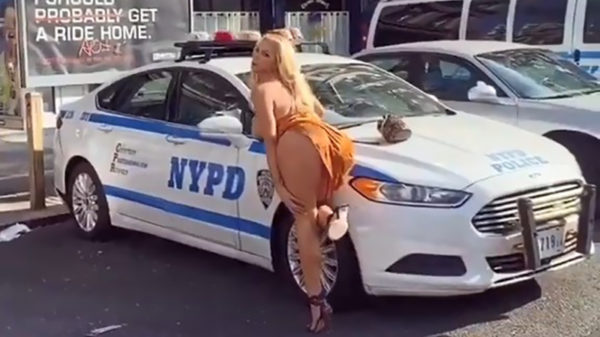 Of het hier ook om een gekwalificeerde verkeersregelaar gaat weten we niet, maar haar twee klaaroverborden vallen in ieder geval goed op.