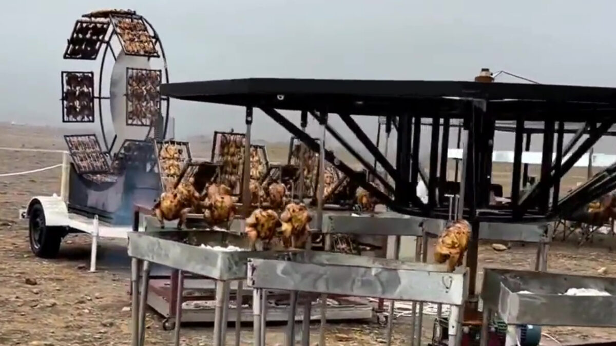Oké, we weten dat hier gewoon een heleboel eten wordt klaargemaakt, maar het lijkt haast op Walibi voor kippen!
