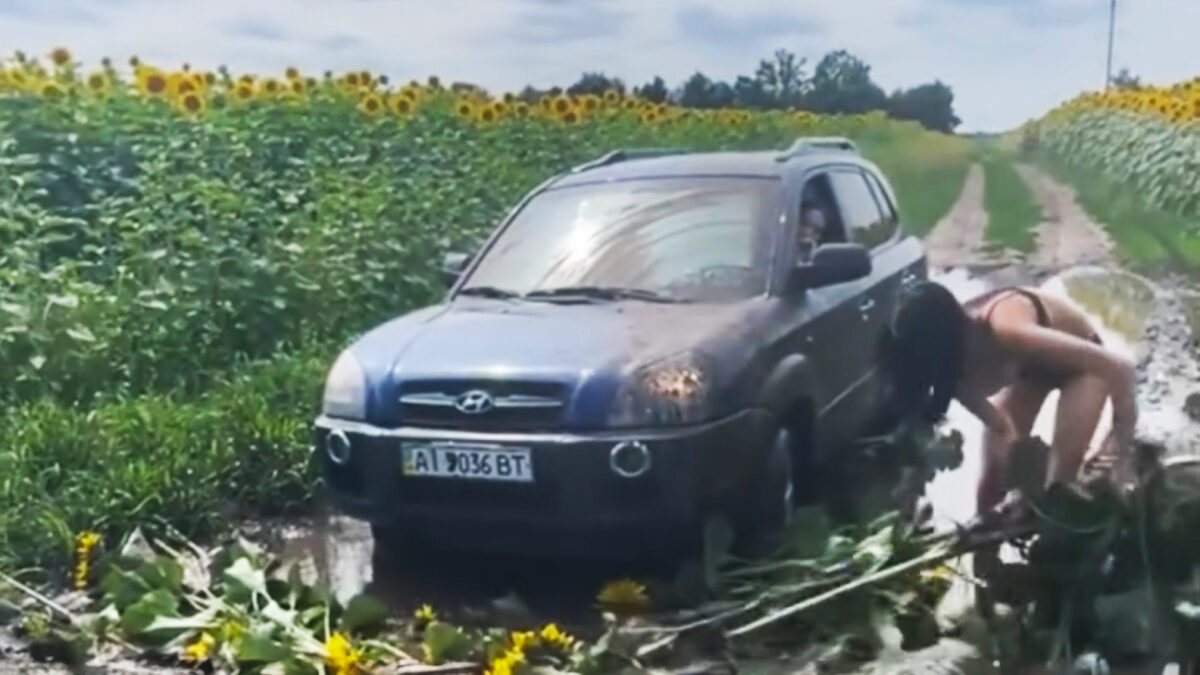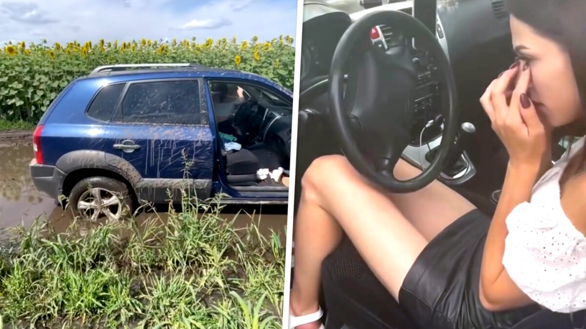 Kijk, deze independent women zijn niet bang om een beetje vies te worden. Met behulp van pure kracht en zonnebloemen weten ze hun vastzittende auto succesvol uit de modder te bevrijden. Ze draaien hun handen er niet voor om hoor.