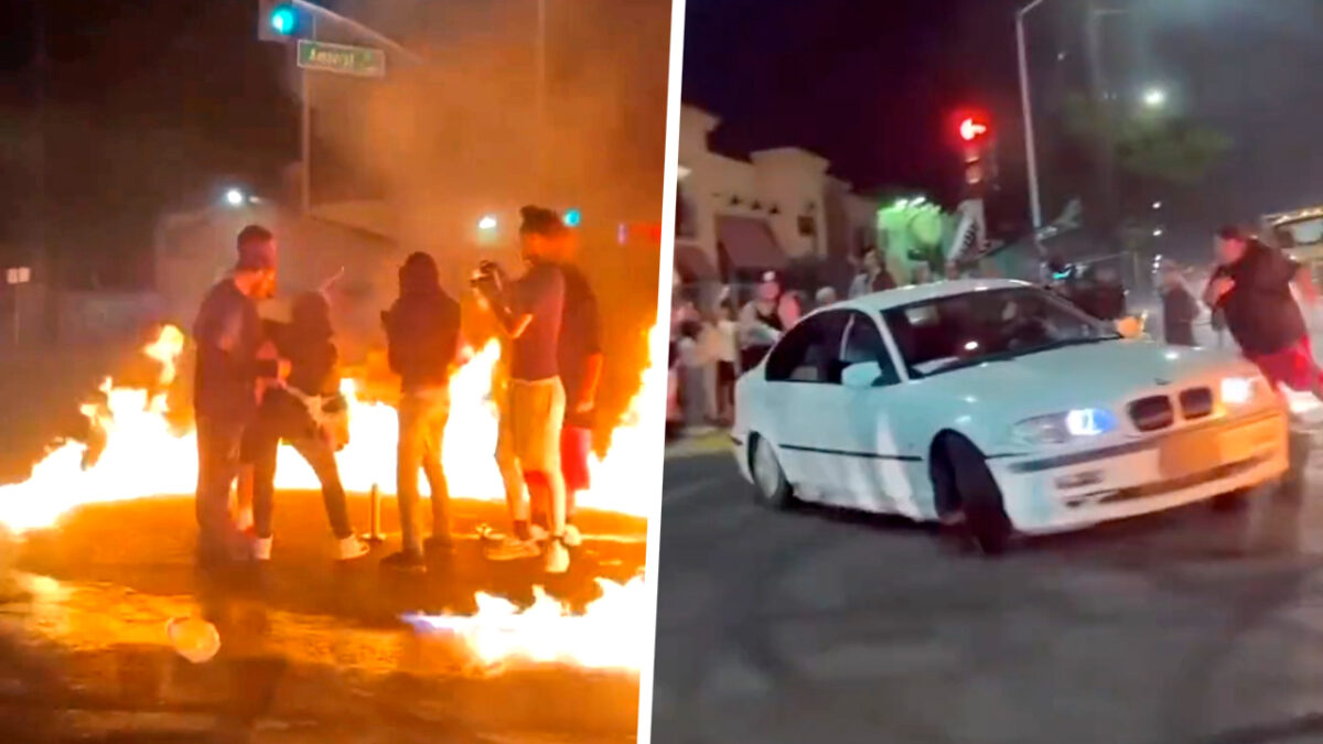 Geen idee wat jullie vrijdagavond hebben gedaan, maar het zal vast niet zo spectaculair zijn geweest als in Oakland; een vuurcirkeltje maken, beetje vuurwerk afsteken en er dan natuurlijk met je auto omheen driften. Wie vindt dat nou niet leuk om te doen?