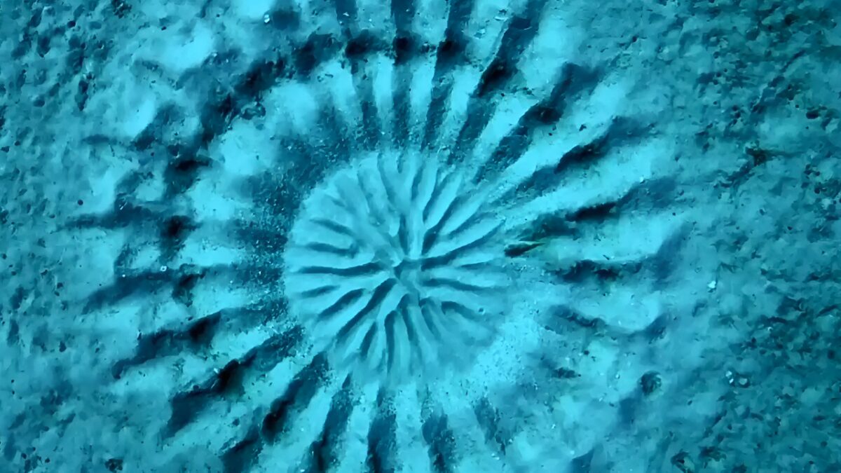 De Japanse Kogelvis toont onvermoeibare inzet bij het verleiden van een vrouwtjesvis door continu, zonder rust, gedurende een hele week de meest verbluffende zandkunst te creëren.