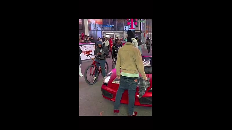 Deze meneer is niet zo dol op lawaaierige sportwagens en blokkeert de weg