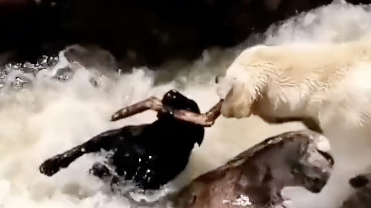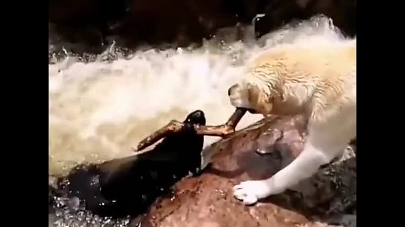 Terwijl de menschheid tegenwoordig waarschijnlijk z'n telefoon zou pakken om een video voor social media te maken, bedenkt deze hond zich geen moment en trekt z'n maatje uit het water. Maar goed, hij heeft natuurlijk ook geen telefoon.