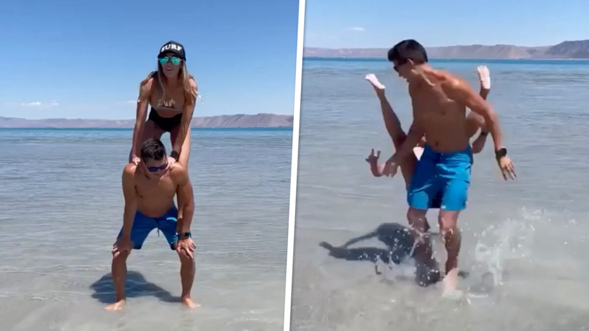 Je kunt op vakantie natuurlijk een beetje suf de hele dag op een strandbedje liggen, maar je kunt ook je grenzen verleggen en iets proberen waarvan je dacht dat je er niet toe in staat zou zijn. Dit gezellige setje ging de uitdaging aan en daar hadden ze (vooral zij) meteen spijt van.
